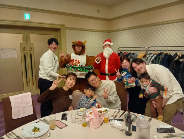 ホテルならではのコース料理🍽️を楽しみながらの歓談のほか、🎅サンタさんの登場や、